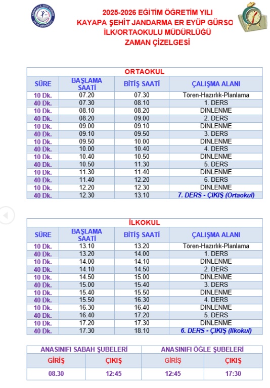 2025-2026 EĞİTİM ÖĞRETİM YILKAYAPA ŞEHİT JANDARMA ER EYÜP GÜRSOY